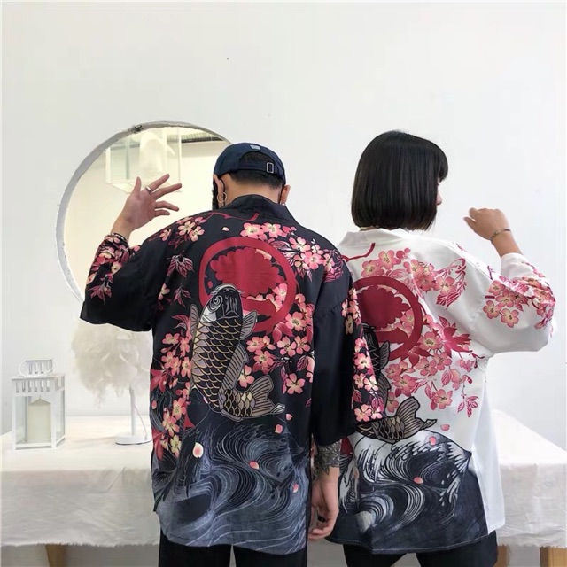 Có sẵn - Áo kimono Haori đi biển hoạ tiết cá chép và rồng kèm ảnh thật